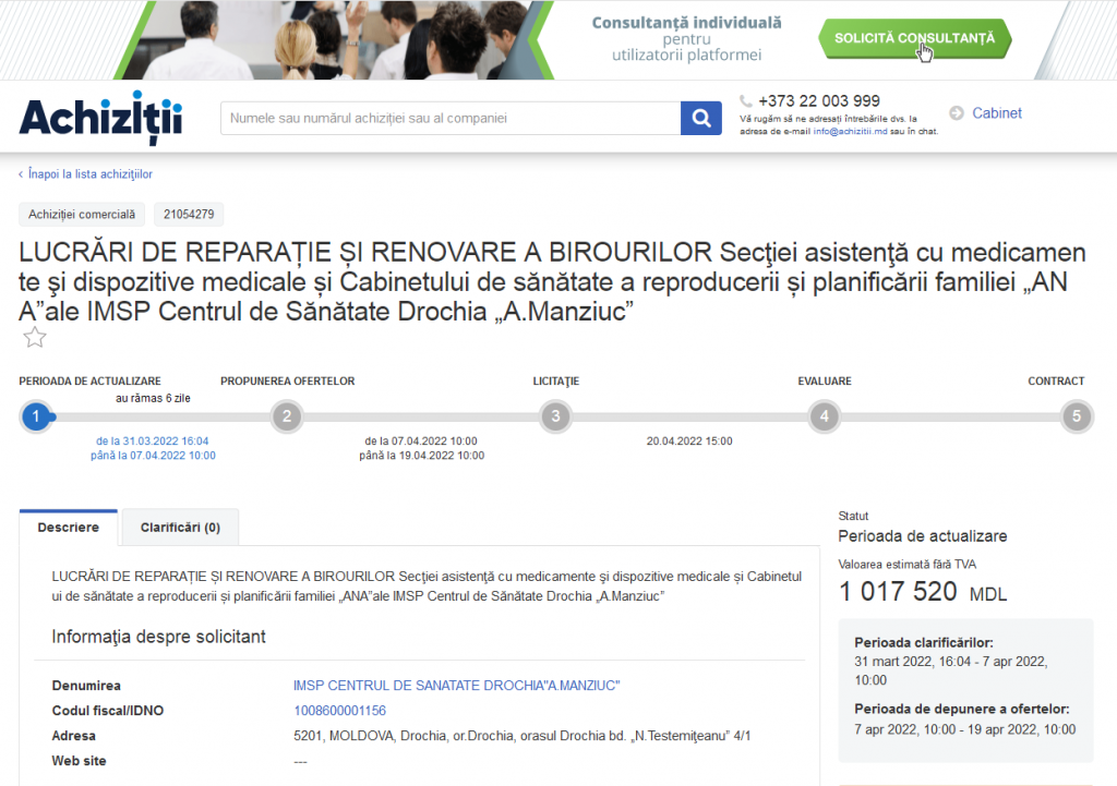 Centrul de Sănătate Drochia asigură transparența maximă a procesului de contractare cu CNAM.